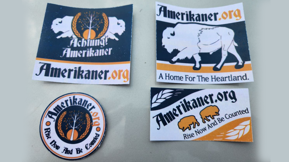 A pack of 10 amerikaner stickers - 7 rectangular, and 1 each round, Achtung! and Home for the Heartland.